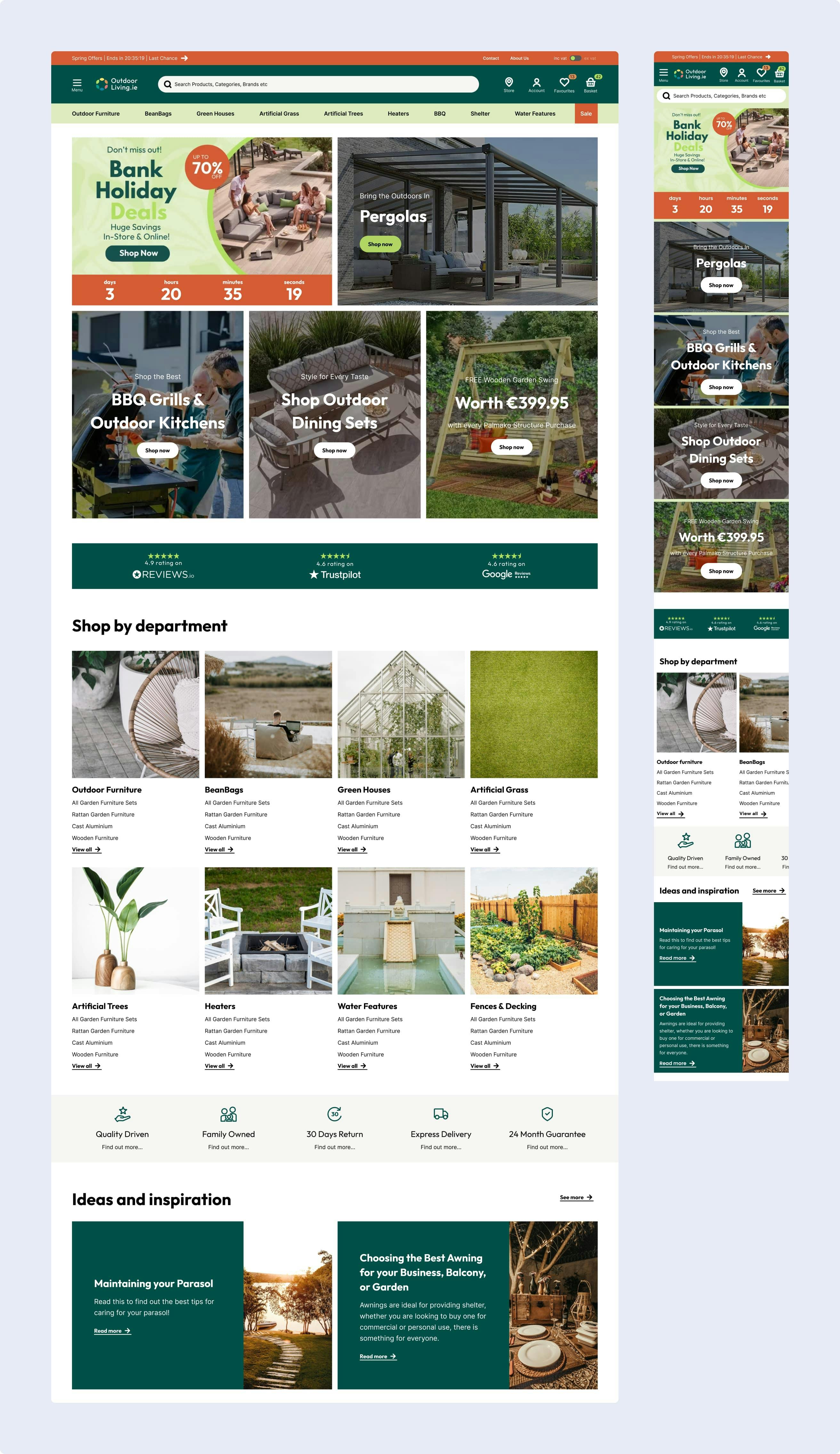 Outdoor Living, a leading online retailer for garden furniture and accessories, approached us after a disappointing experience with their previous ecommerce agency. Their website, cluttered and sluggish, failed to capture the range of their products and resulted in dwindling customer engagement.